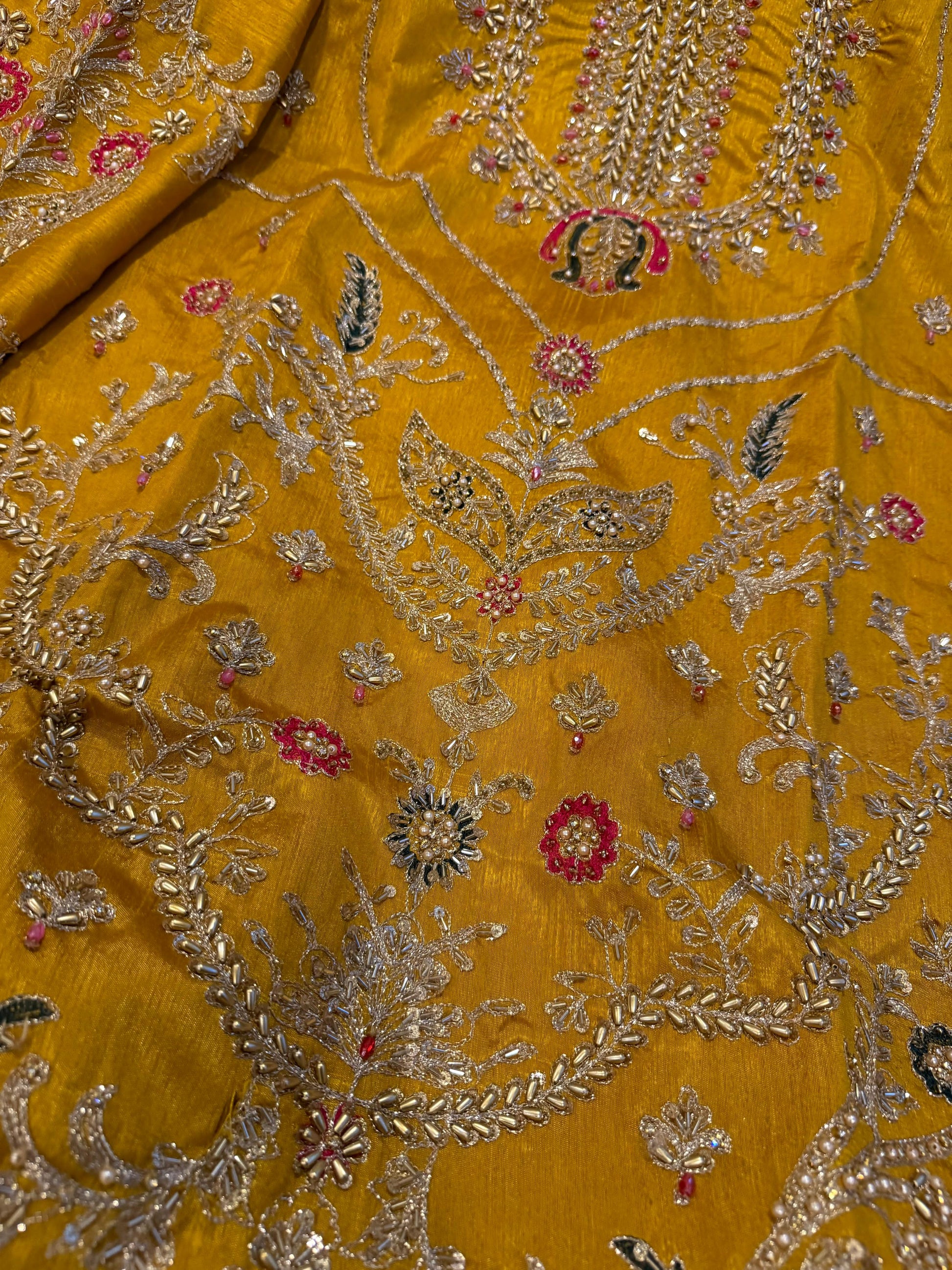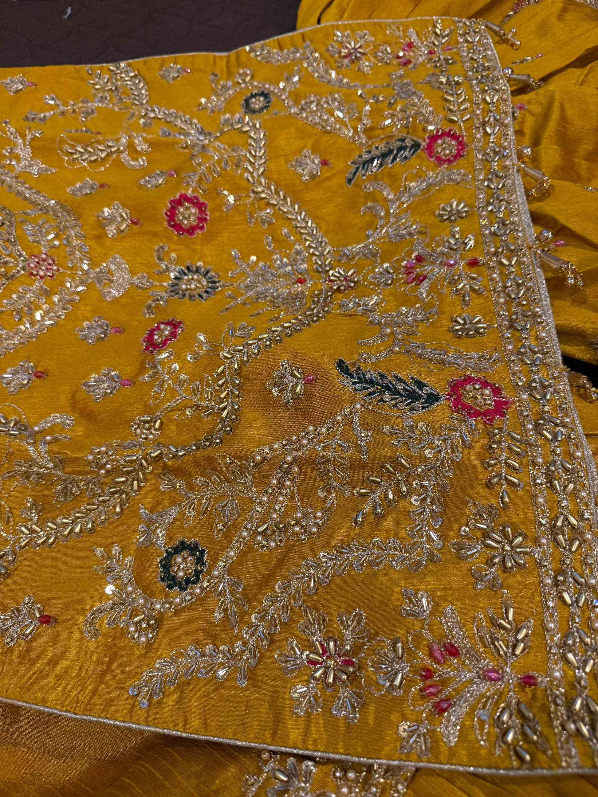 - Heavy Bridal Mehndi Dress with Matching Potli