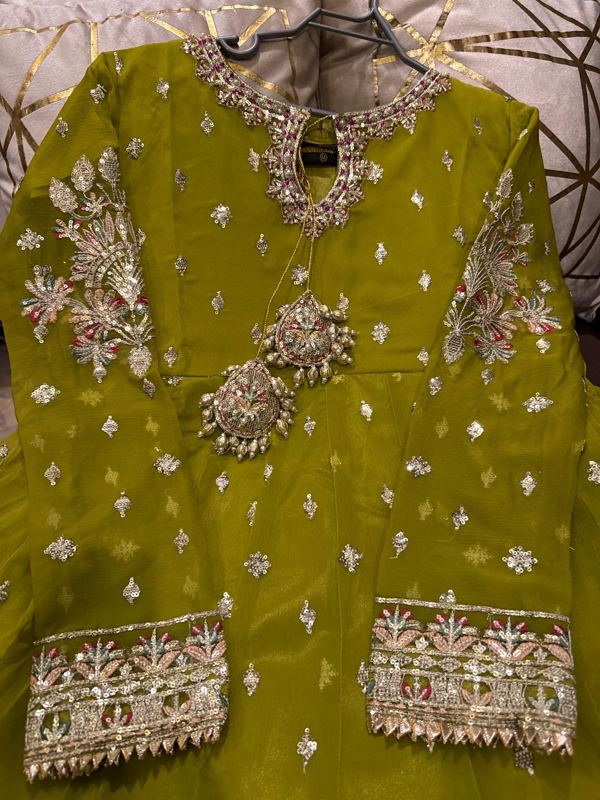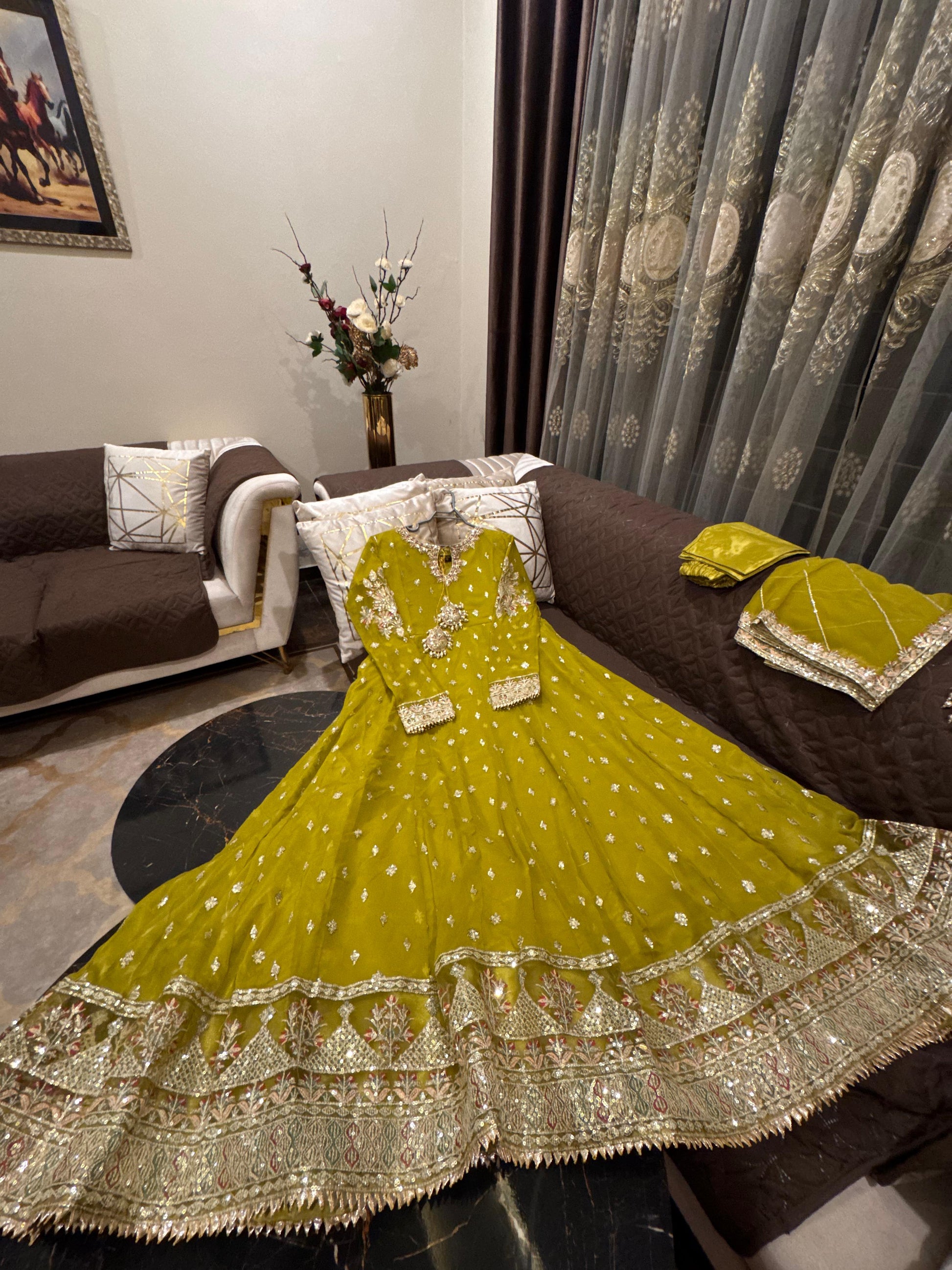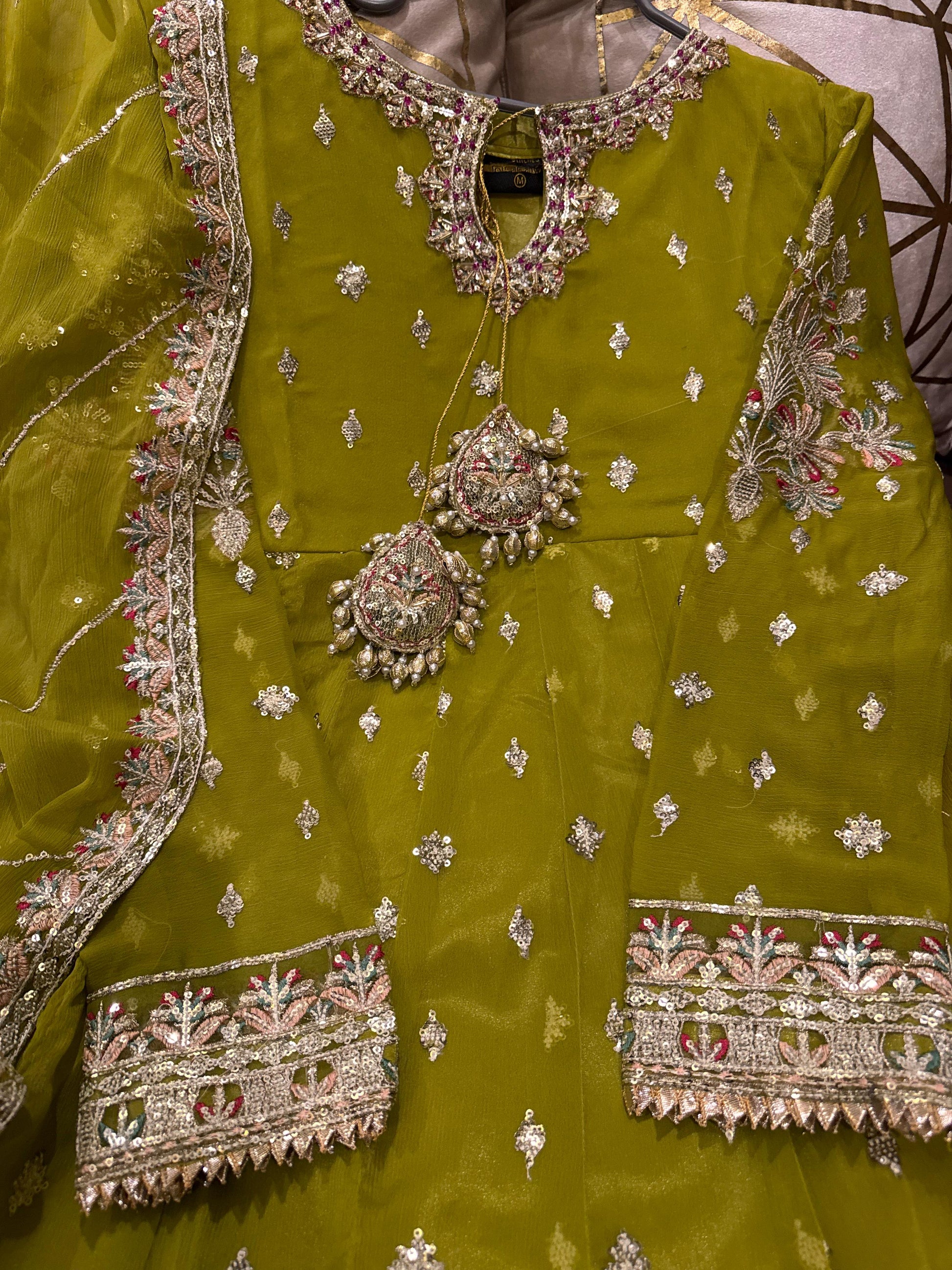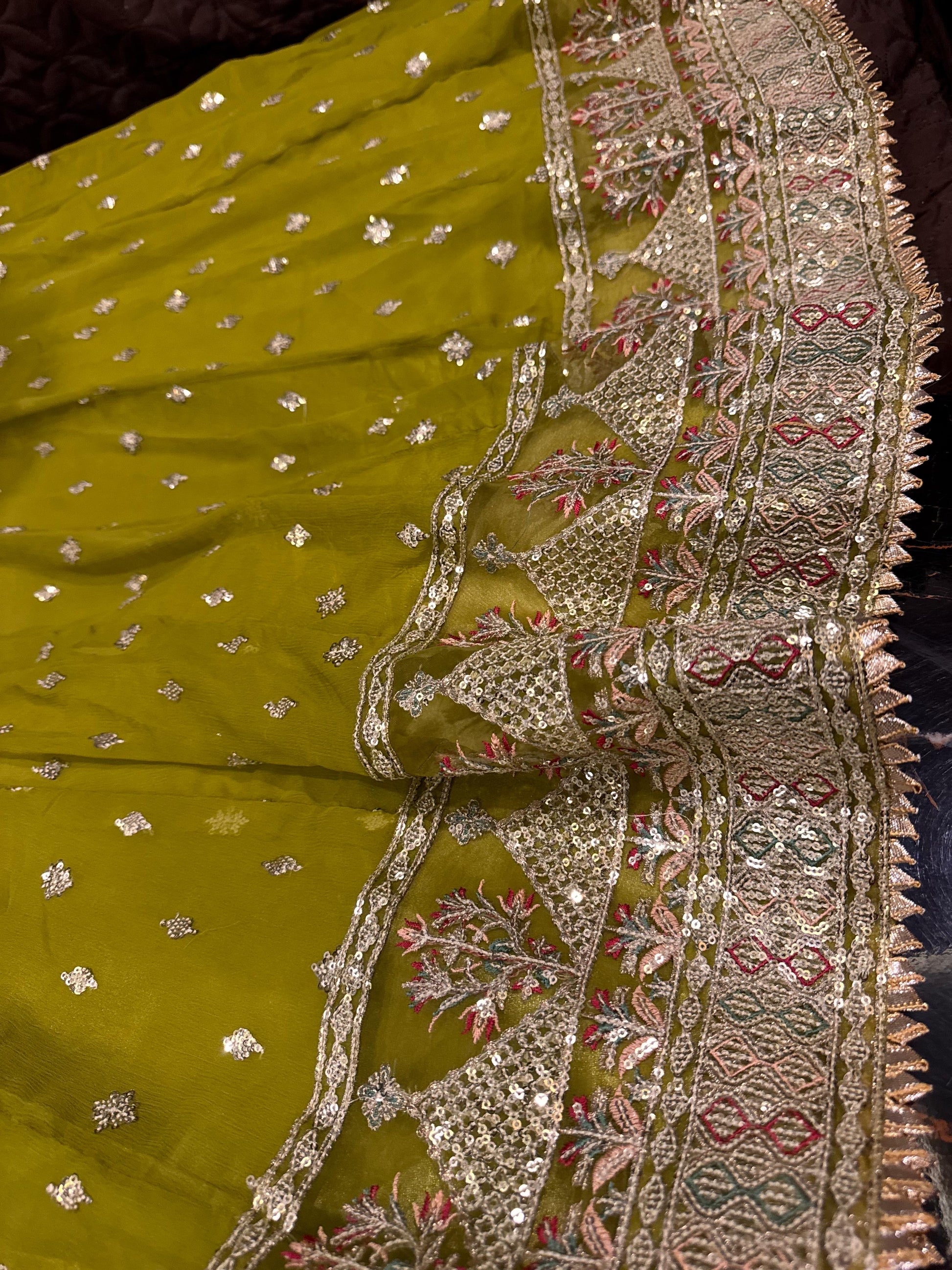 - Includes: Chiffon sequence dupatta & silk trouser 👰