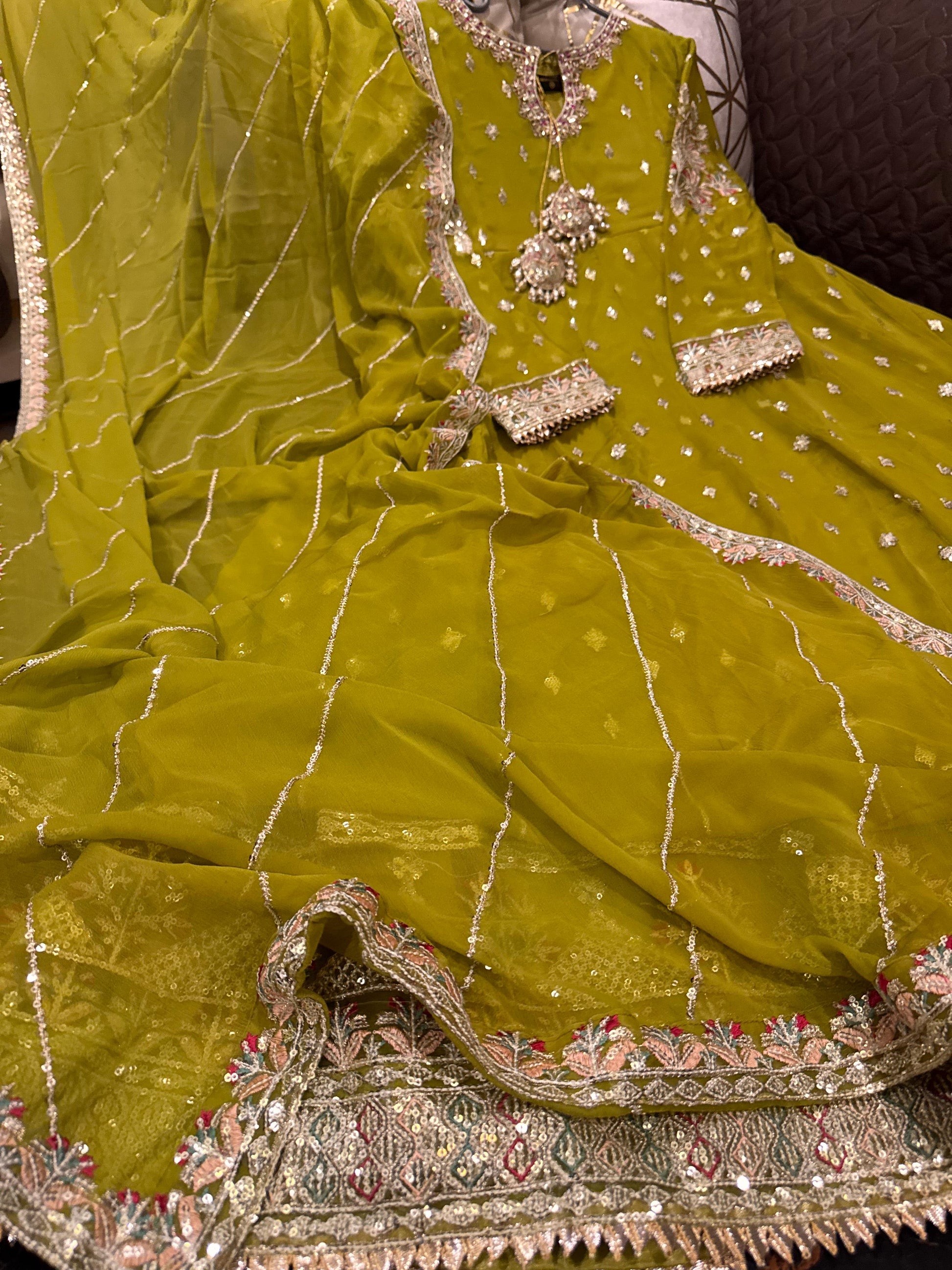 - Heavy Sequence & Thread Work Full Flairy Chiffon Long Mexi ✨