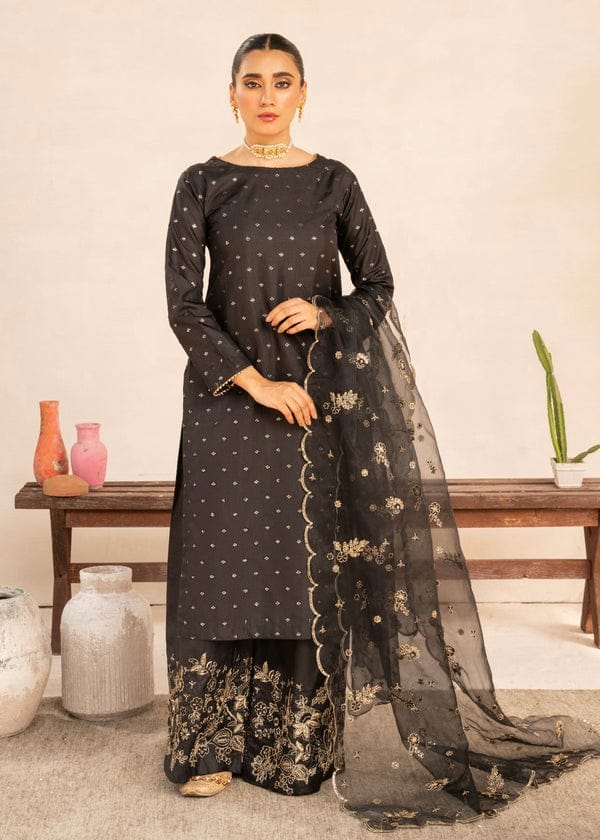 Accompanied by a plazo and a fully embroidered organza dubta, this 3-piece set is perfect for any occasion.