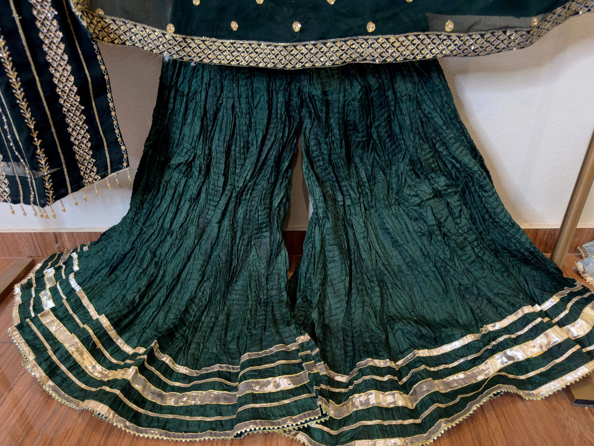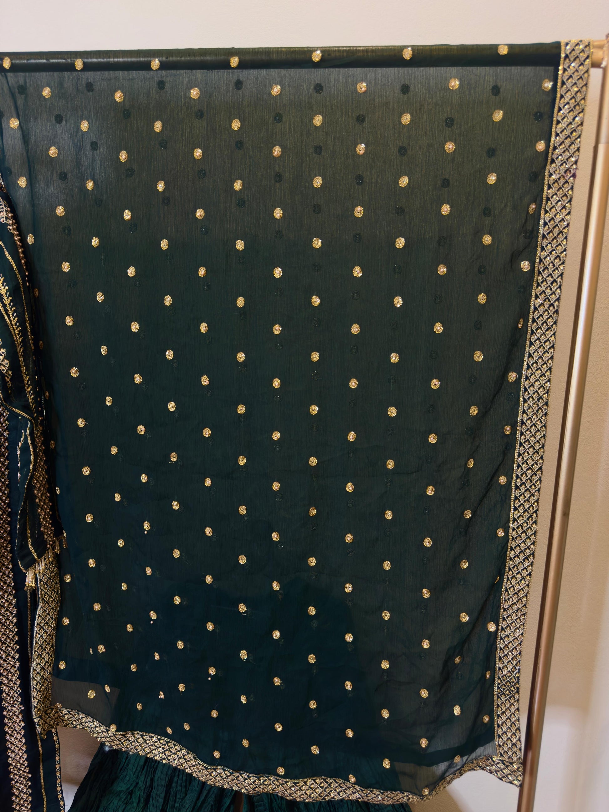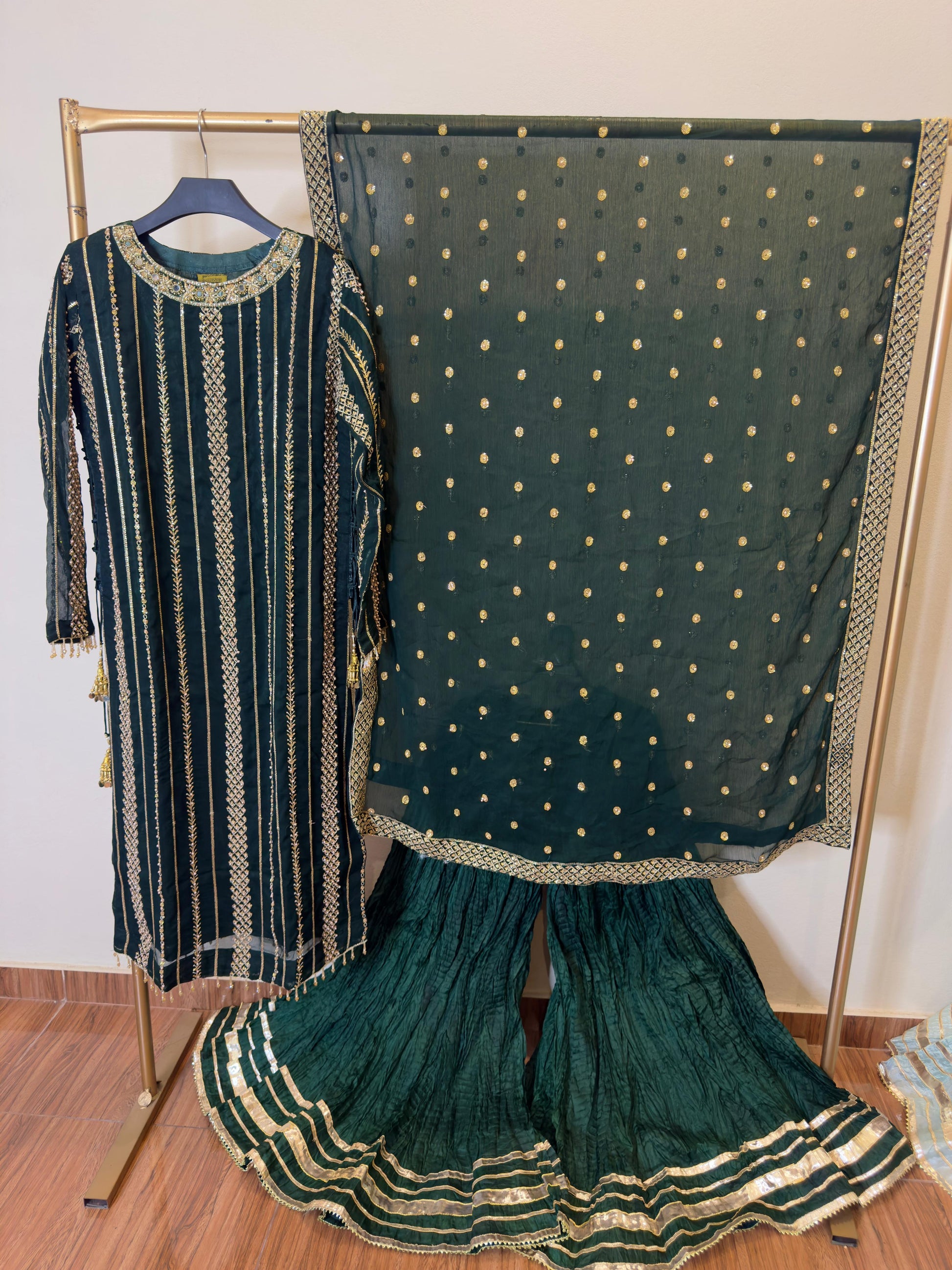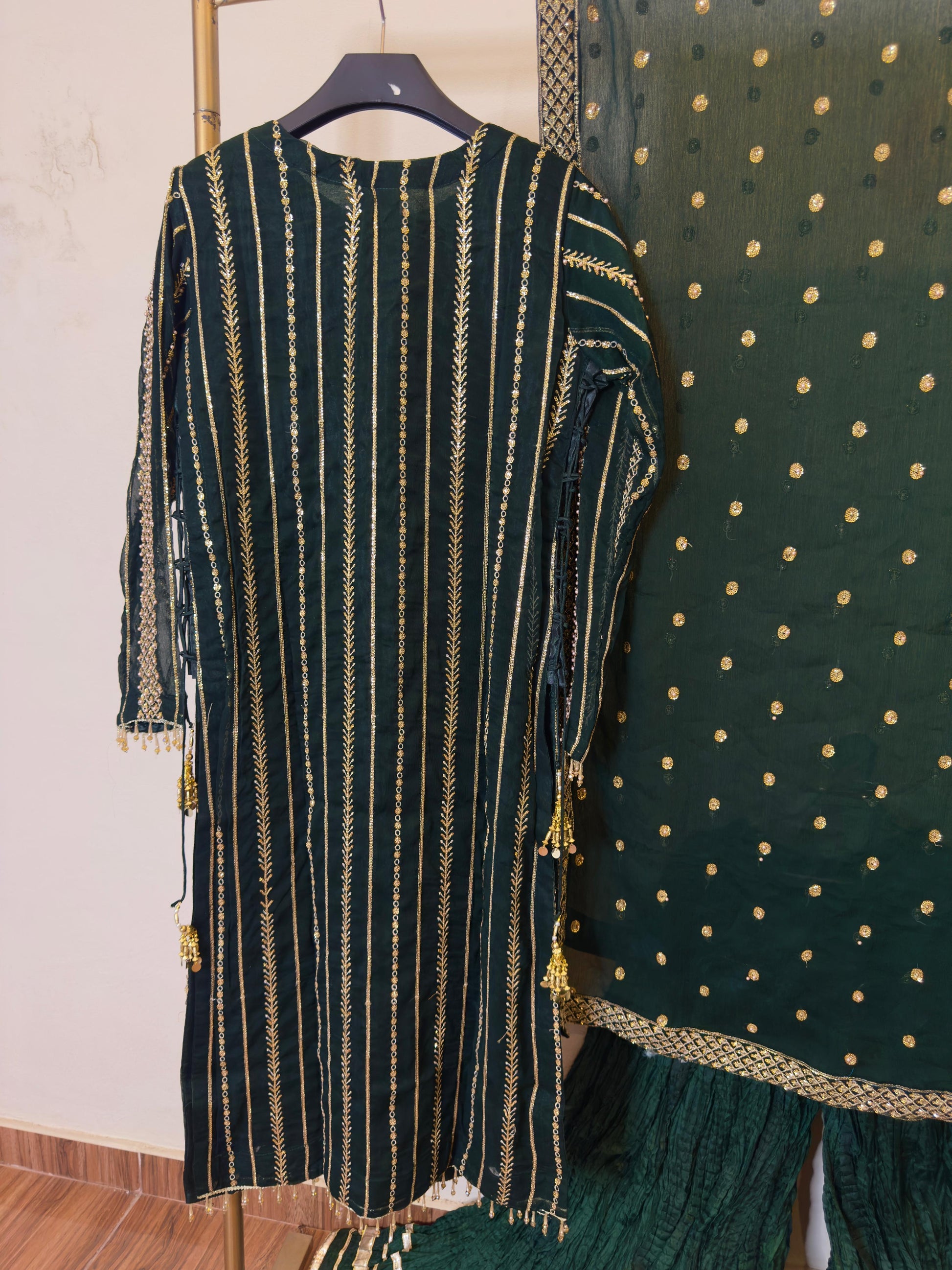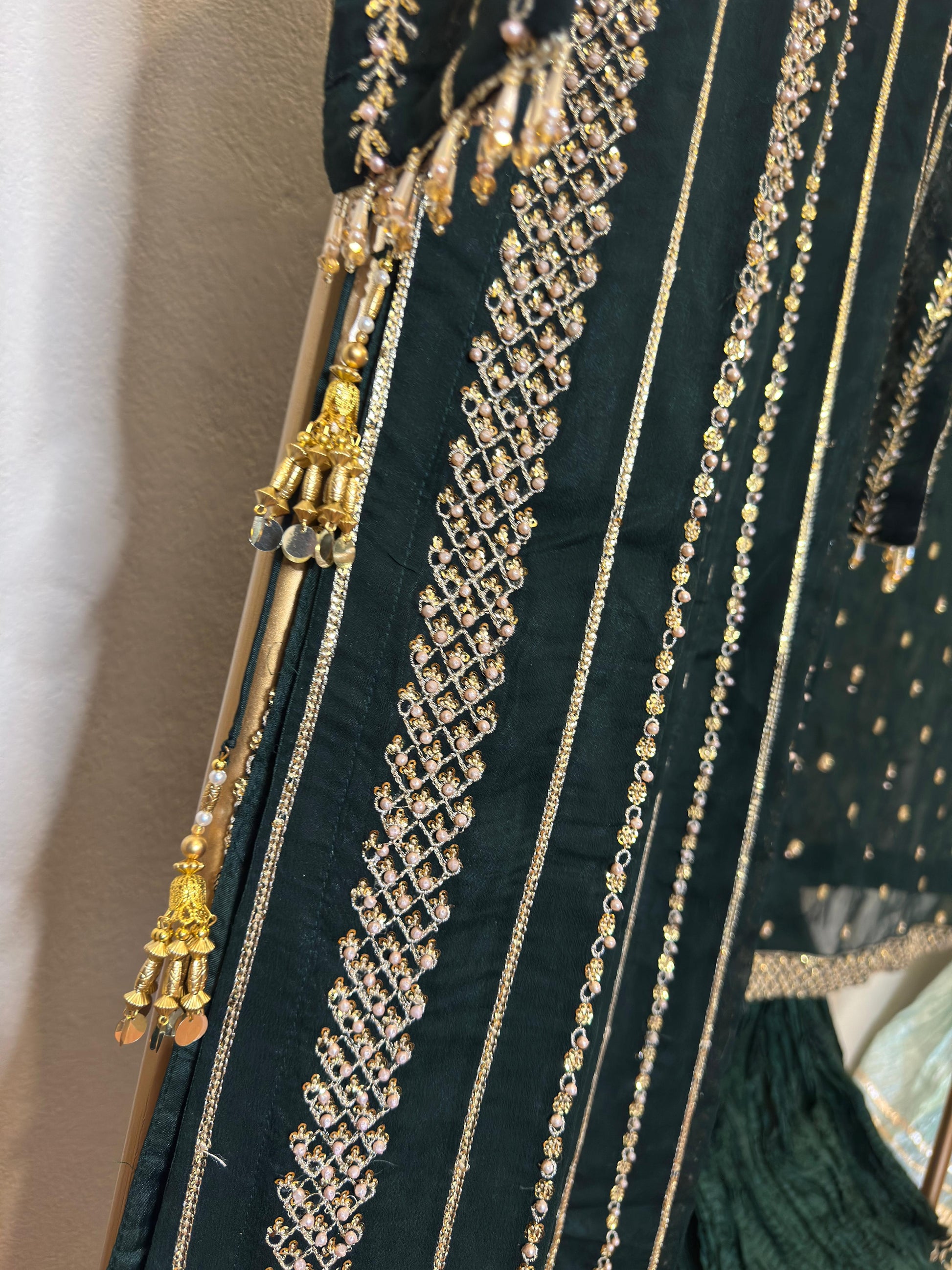 Chifon front back sequence pearl & thread work long shirt length 47 wd chifon fancy sequence work dopta & crush shrara