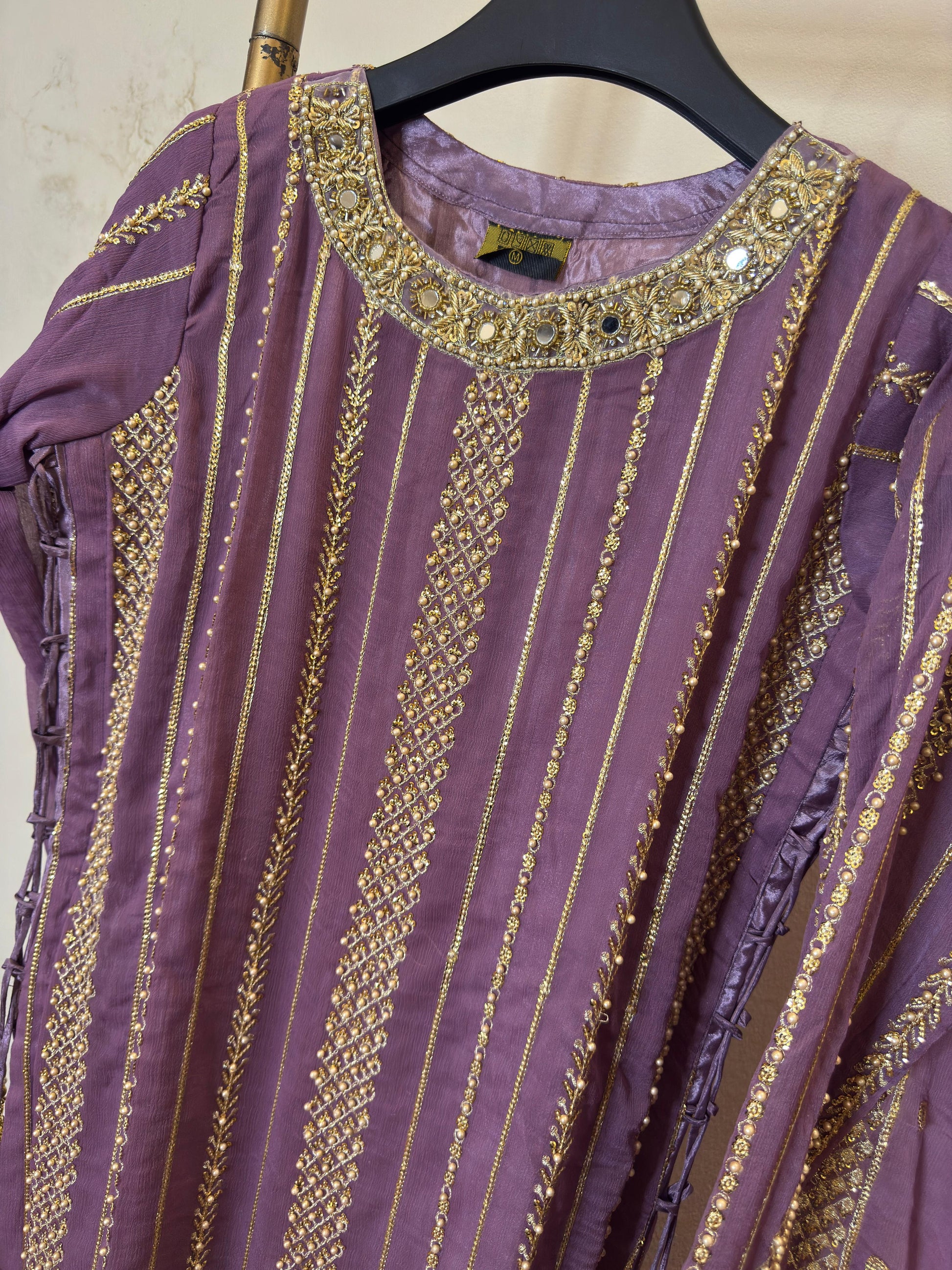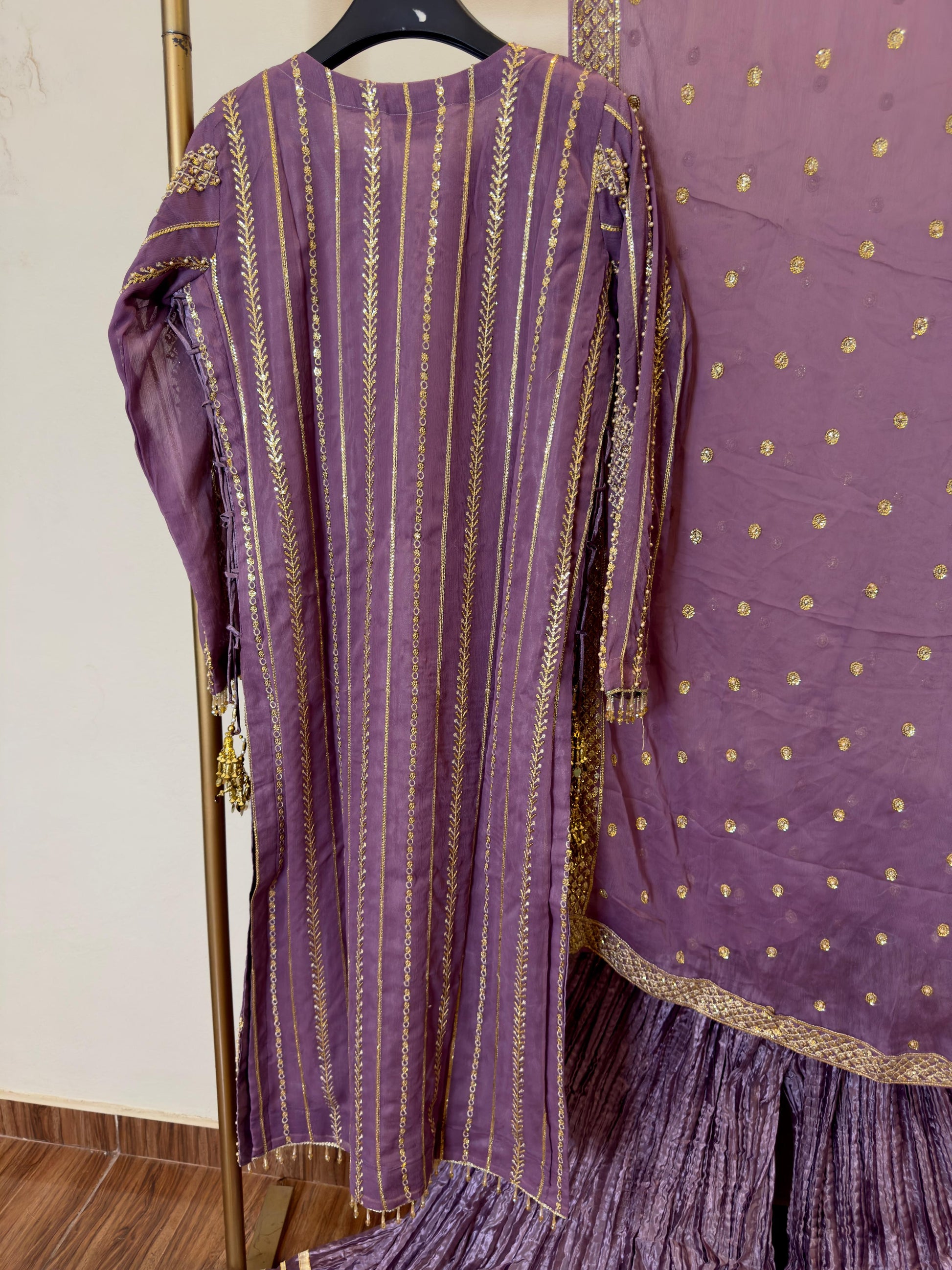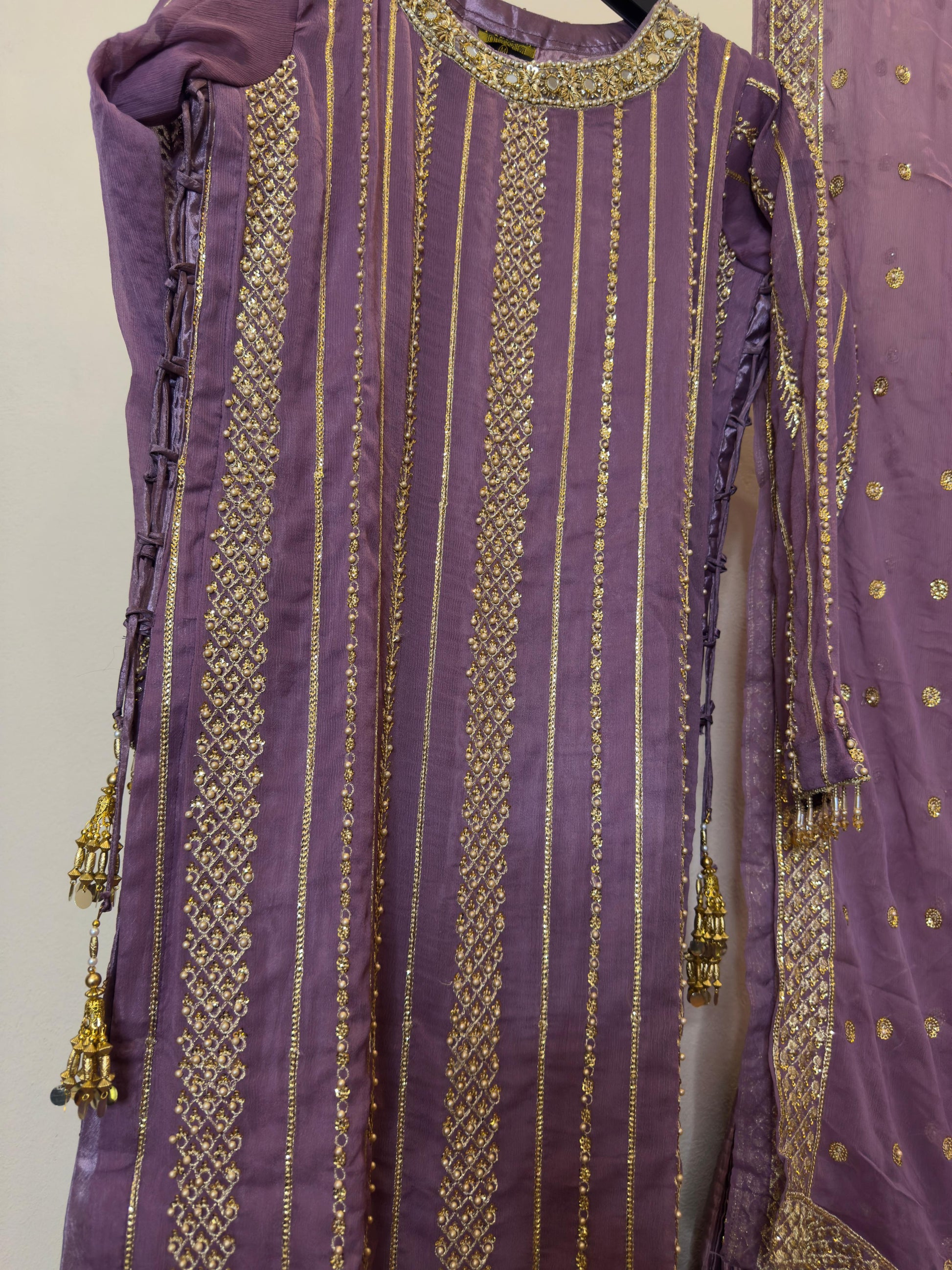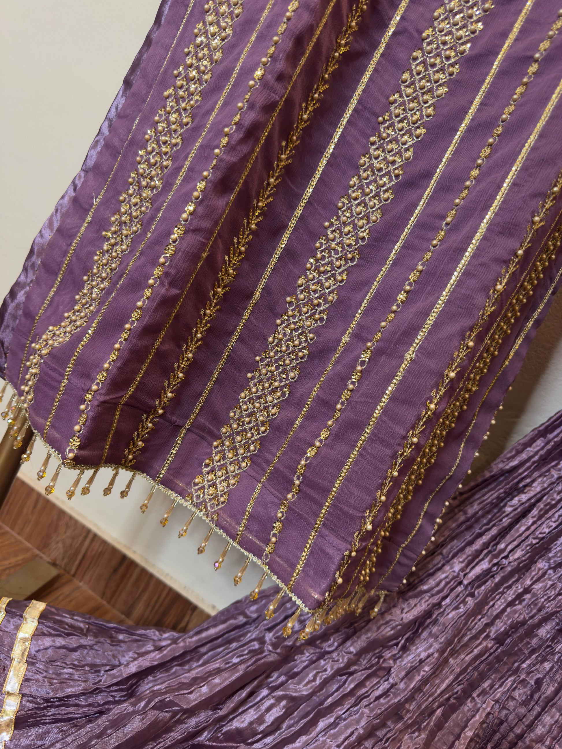 Chifon front back sequence pearl & thread work long shirt length 47 wd chifon fancy sequence work dopta & crush shrara
