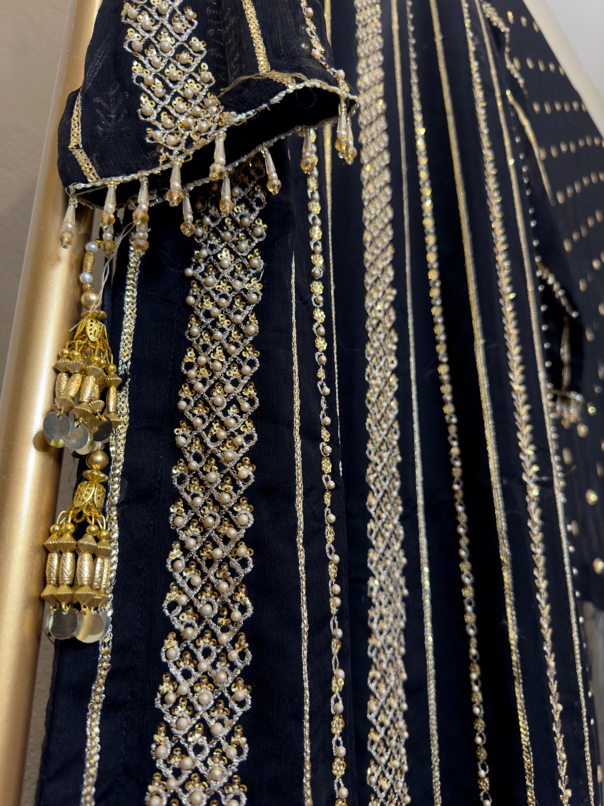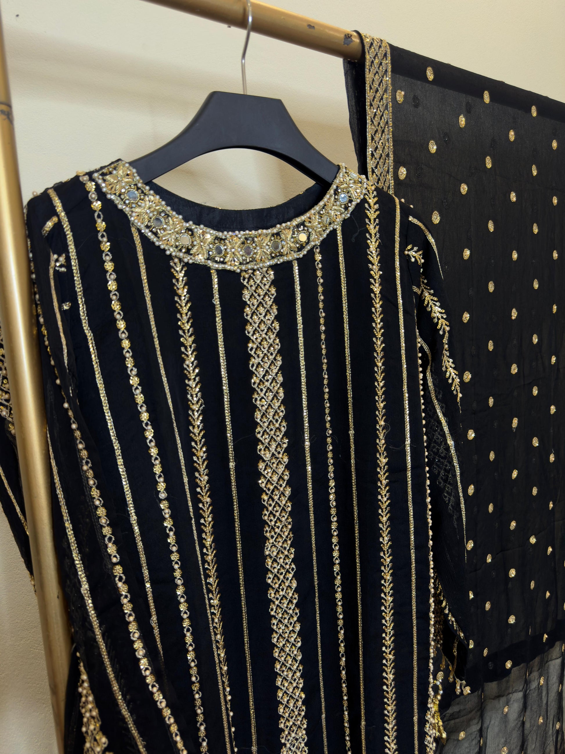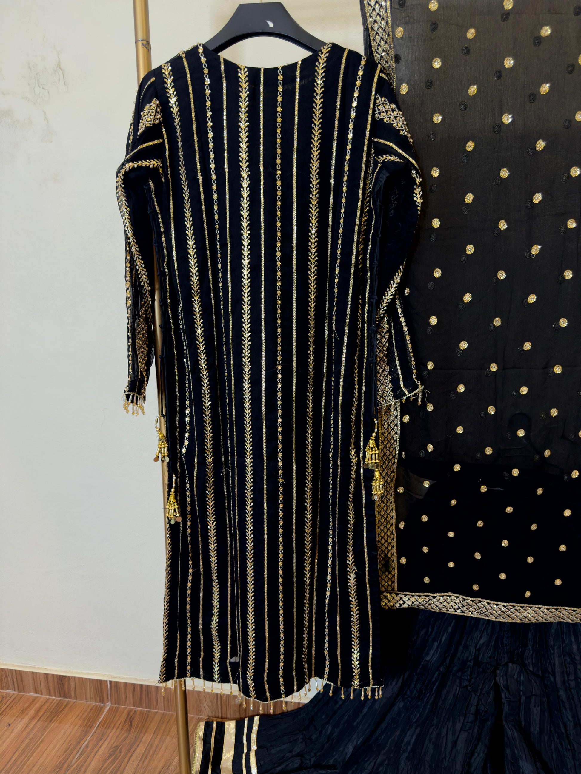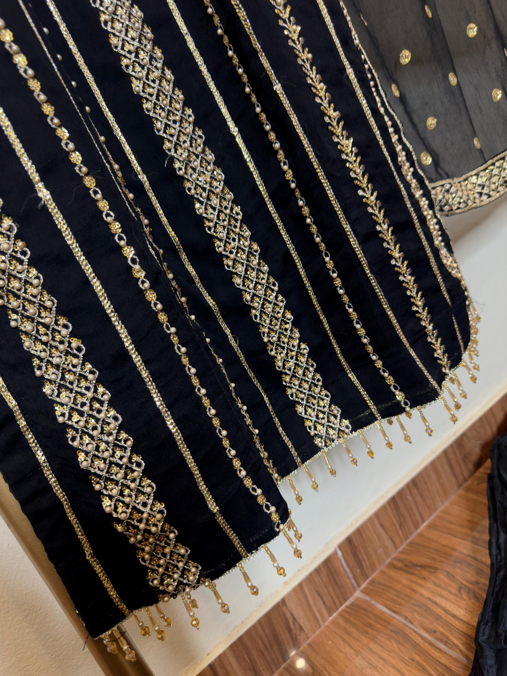 Chifon front back sequence pearl & thread work long shirt length 47 wd chifon fancy sequence work dopta & crush shrara