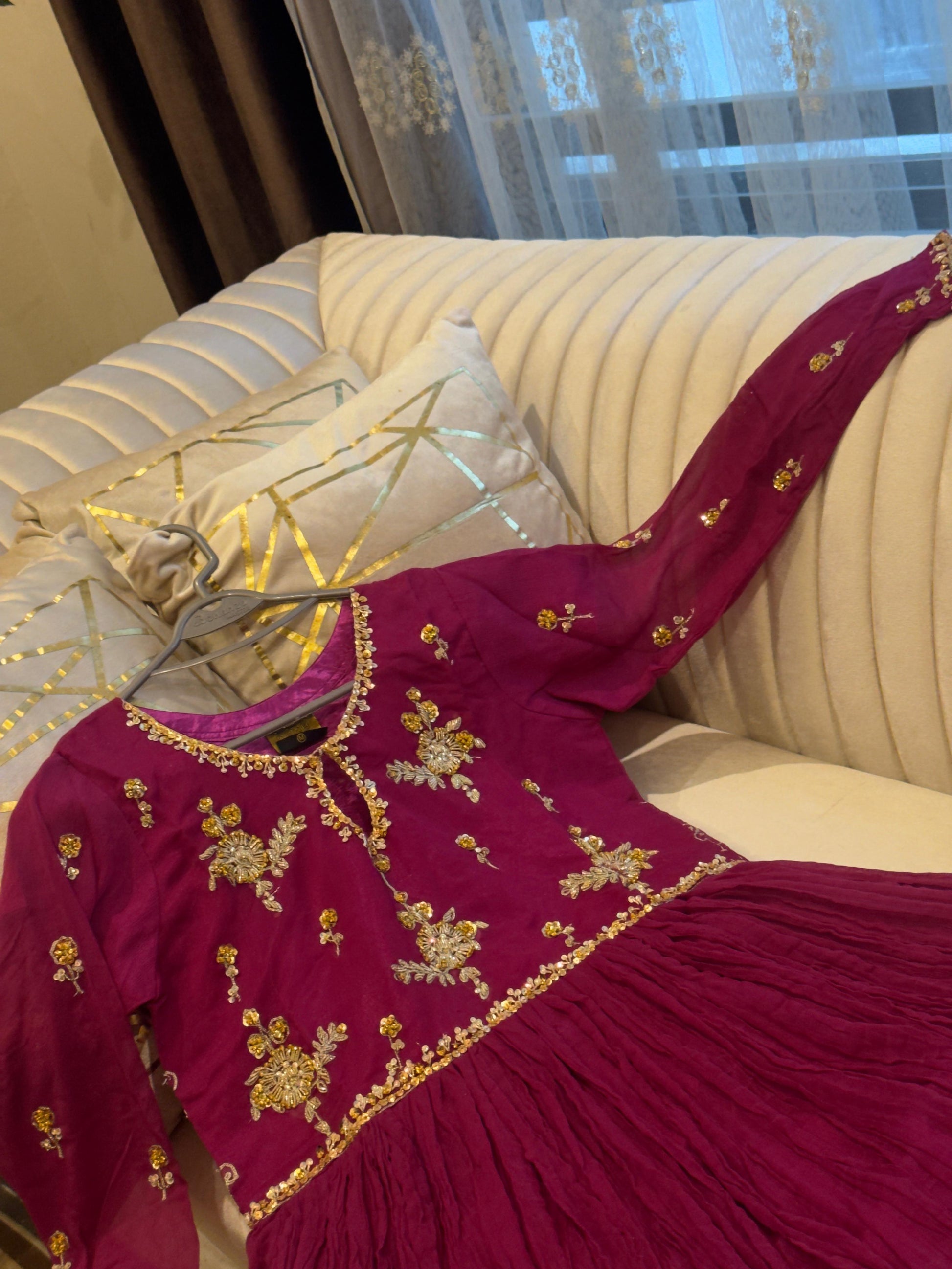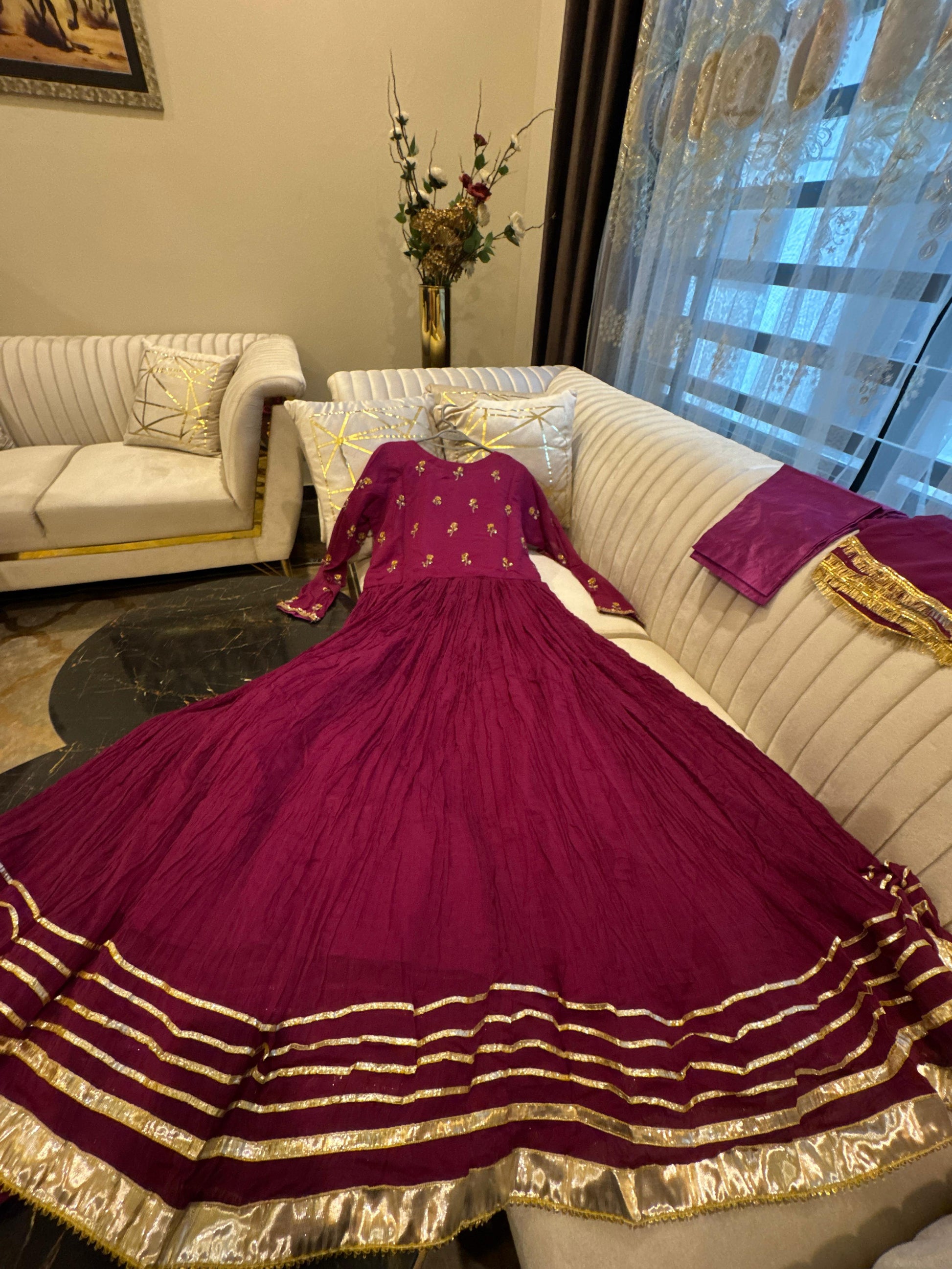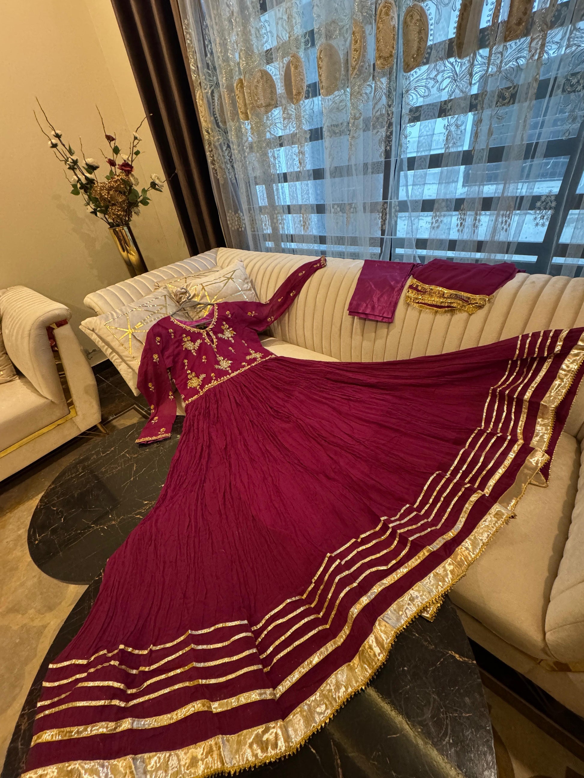 - Full flair chiffon crush long maxi with intricate front and back hand work
