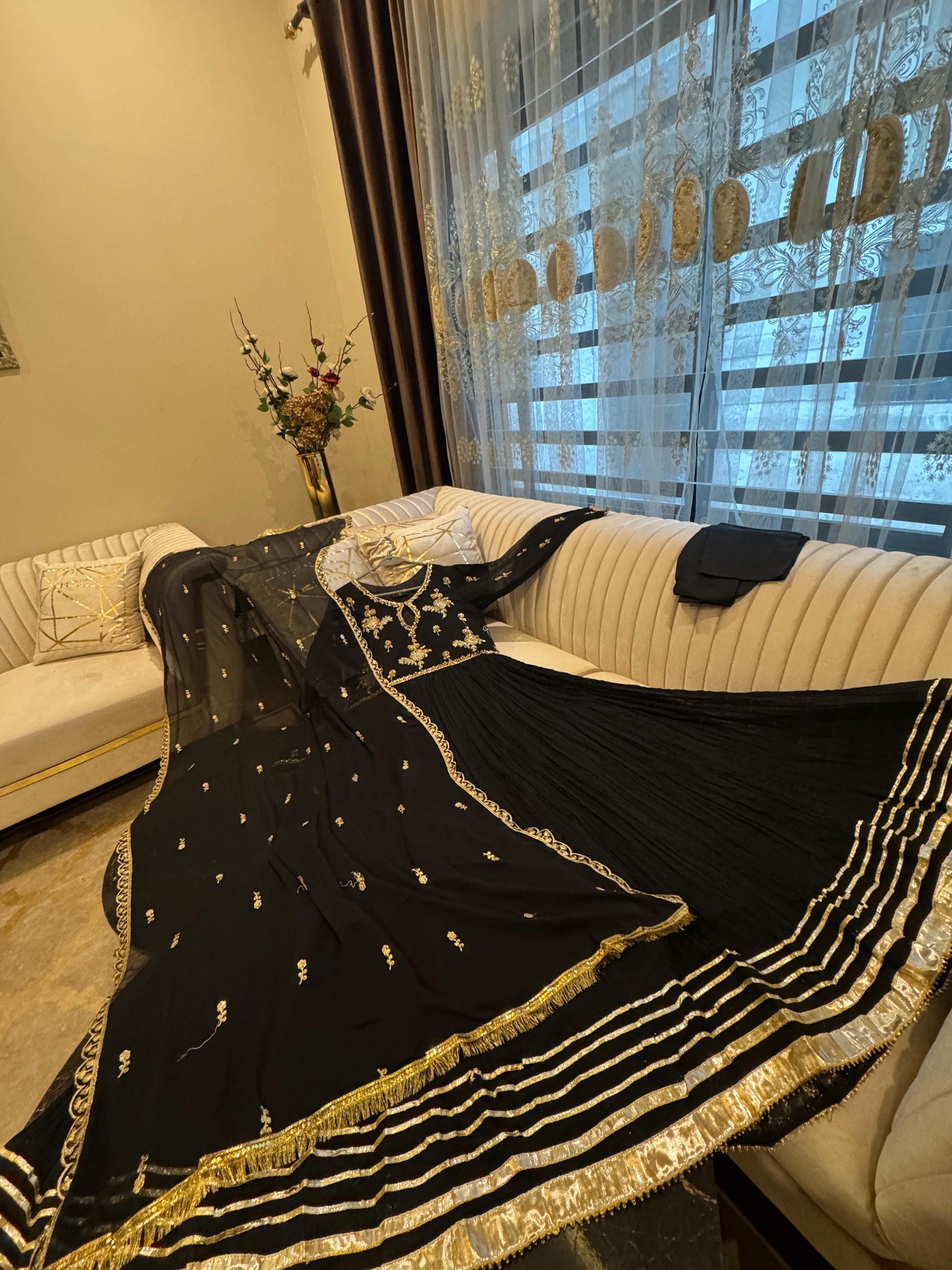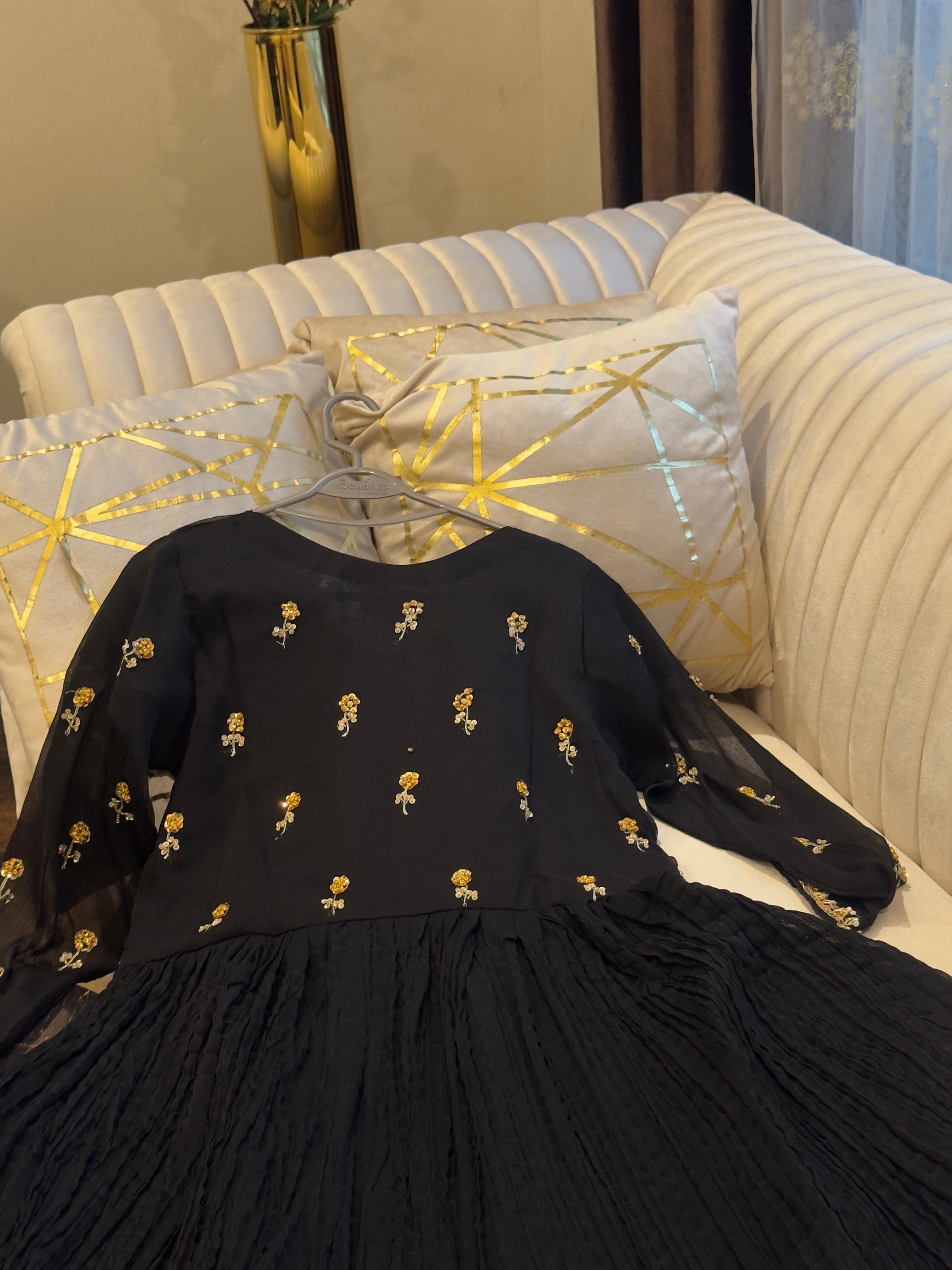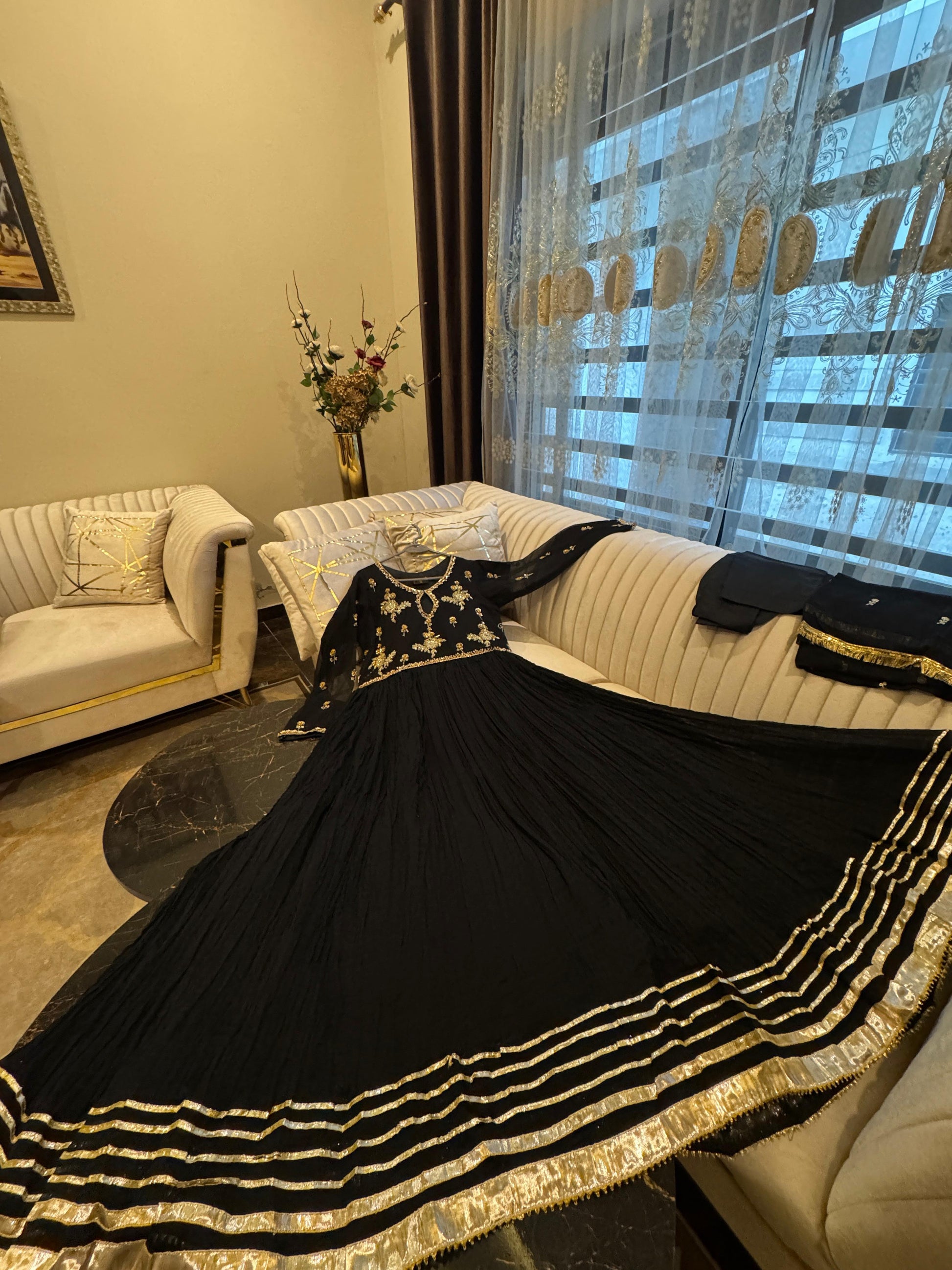 - Full flair chiffon crush long maxi with intricate front and back hand work