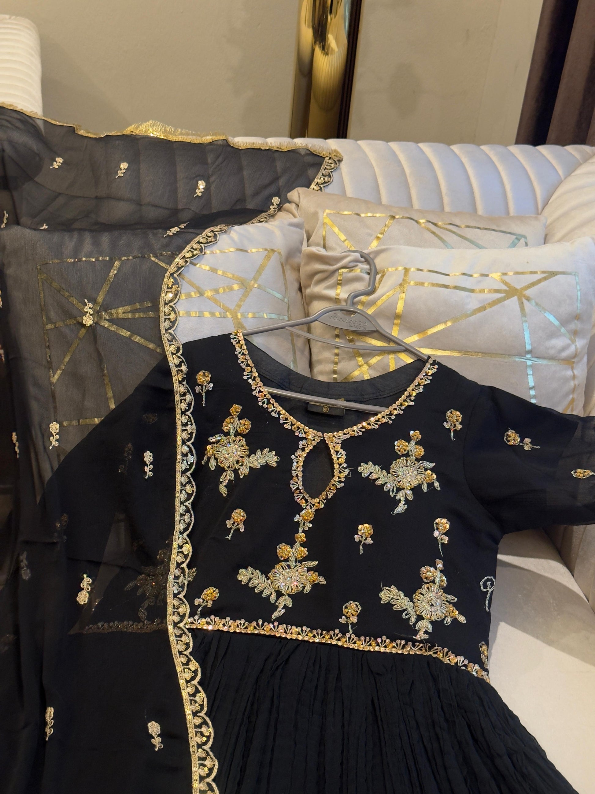 - Paired with chiffon dupatta and trouser for a perfect look