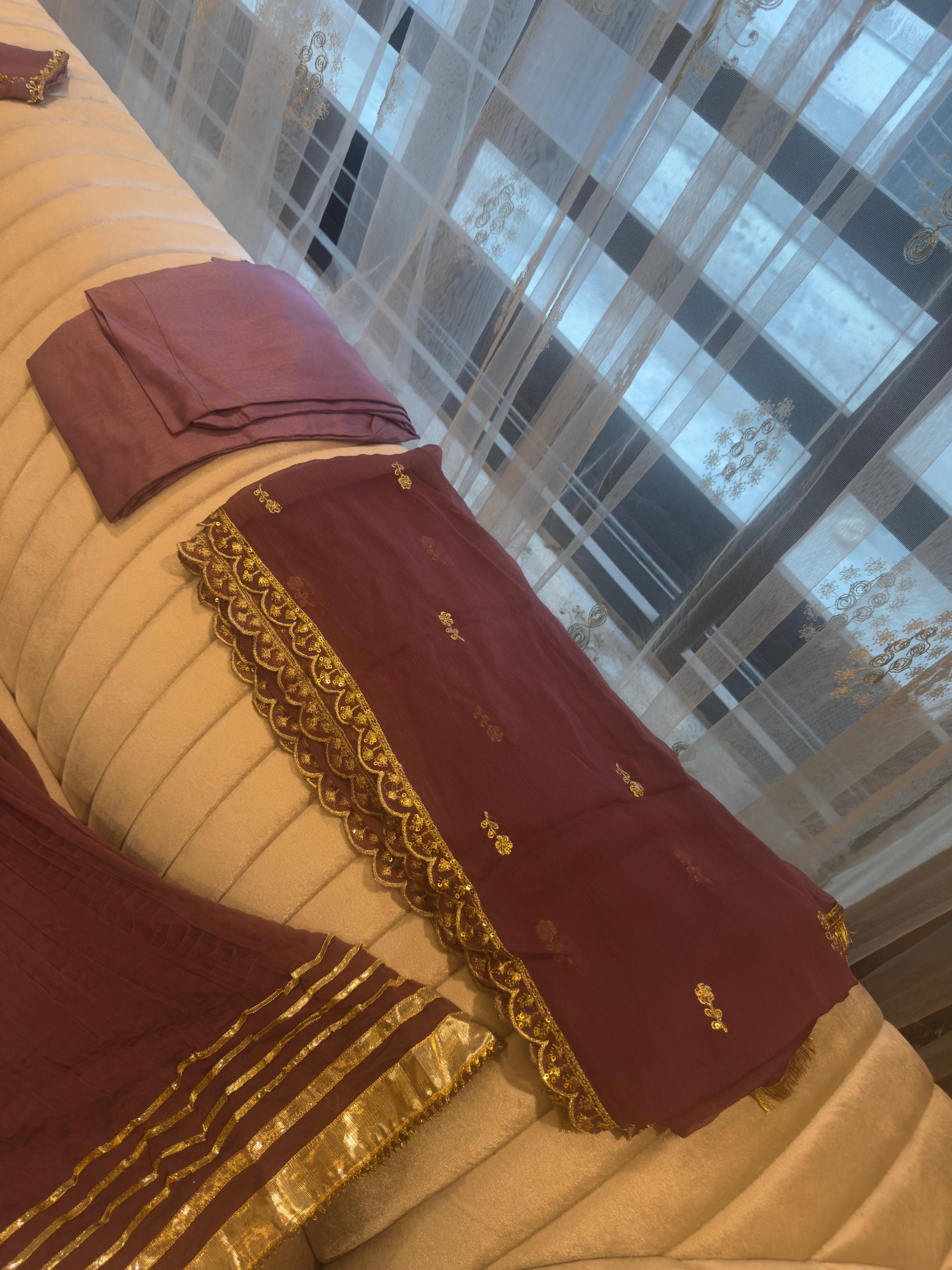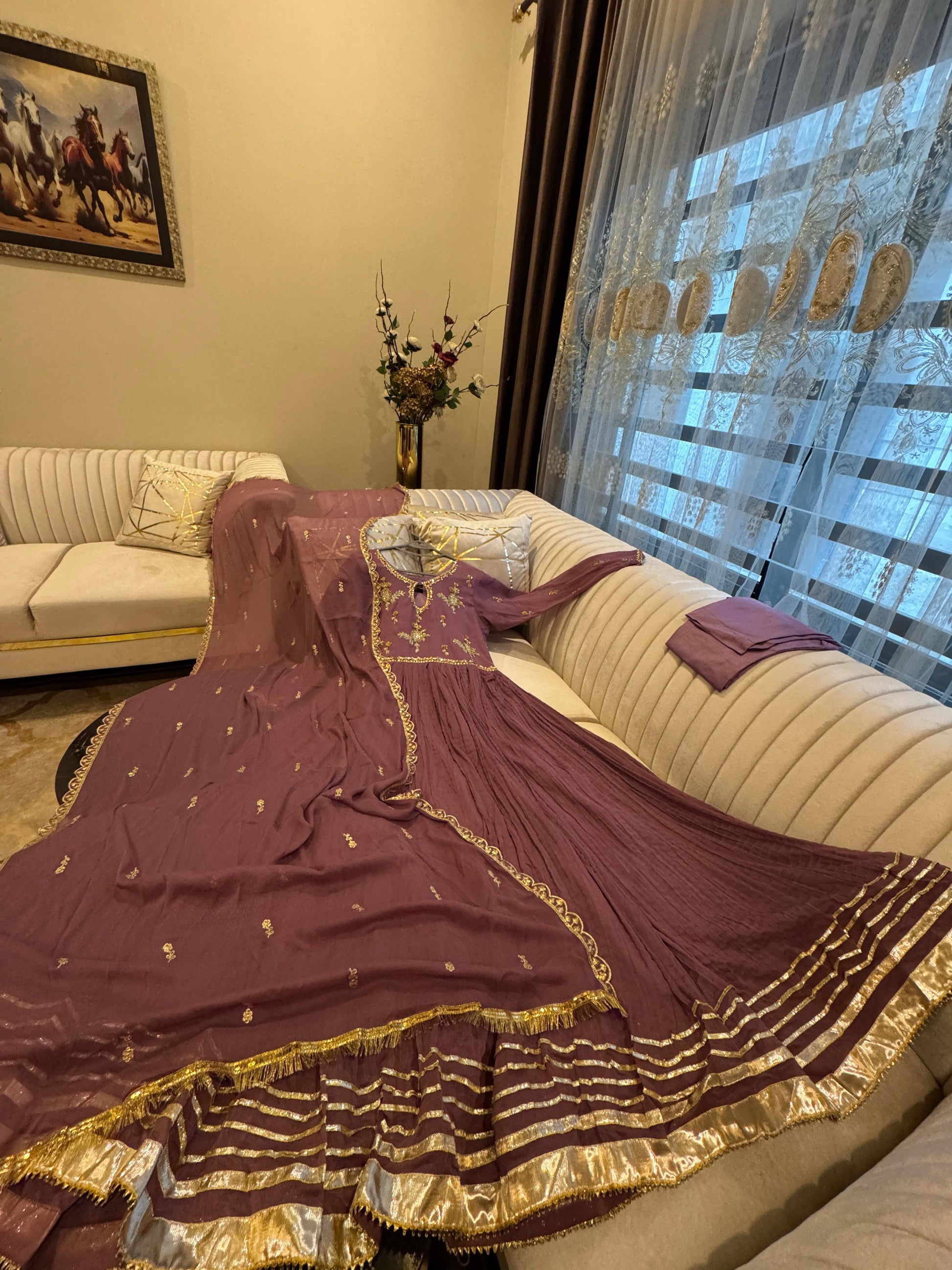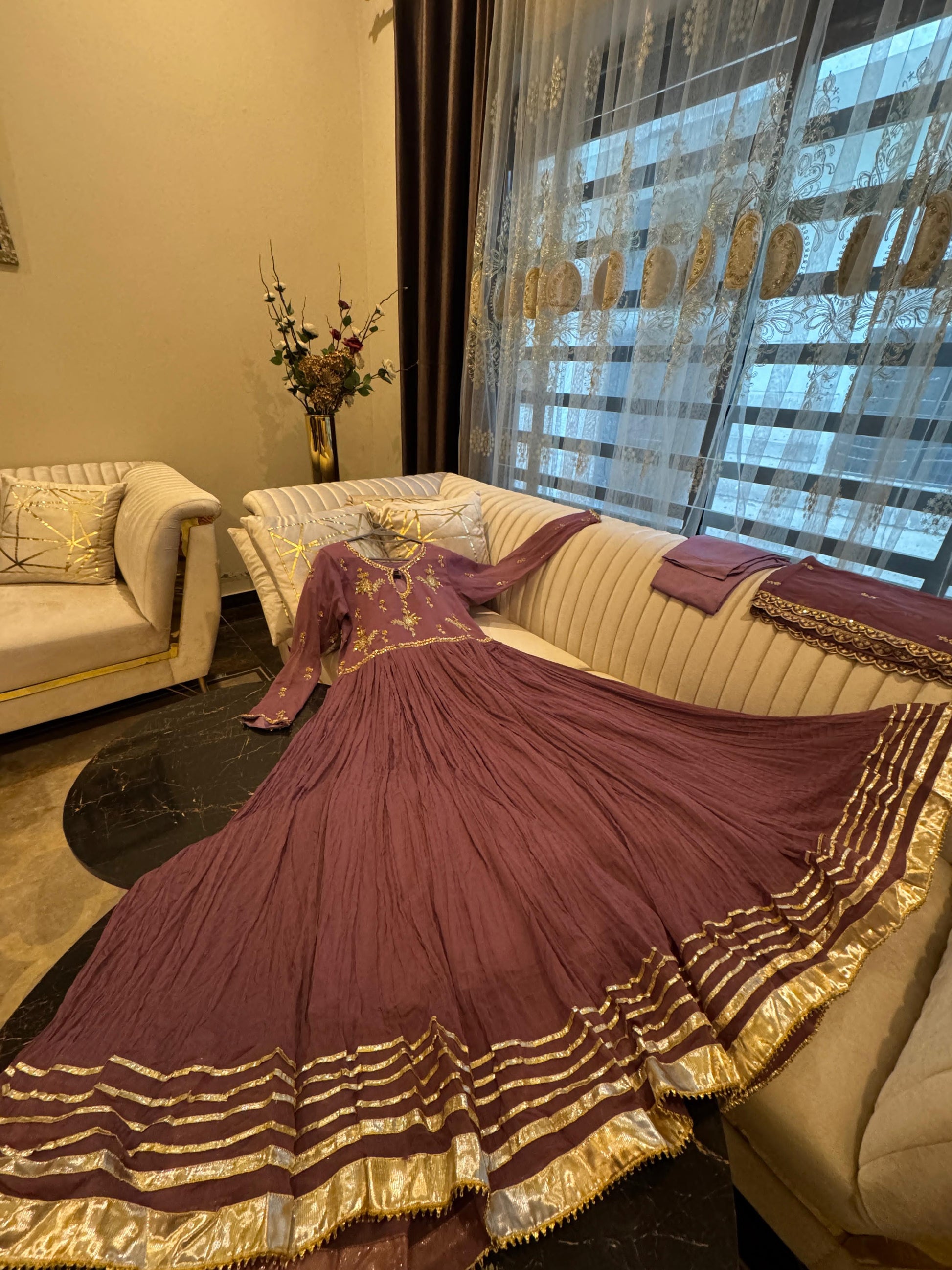 - Full flair chiffon crush long maxi with intricate front and back hand work