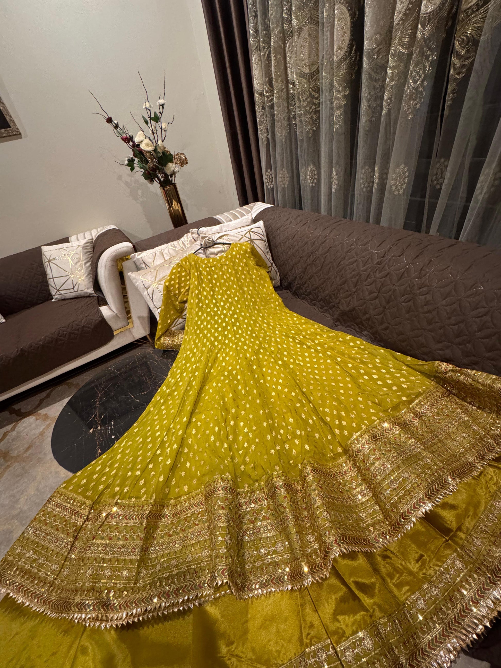 - Chiffon flairy maxi with handmade cutdana work ✨