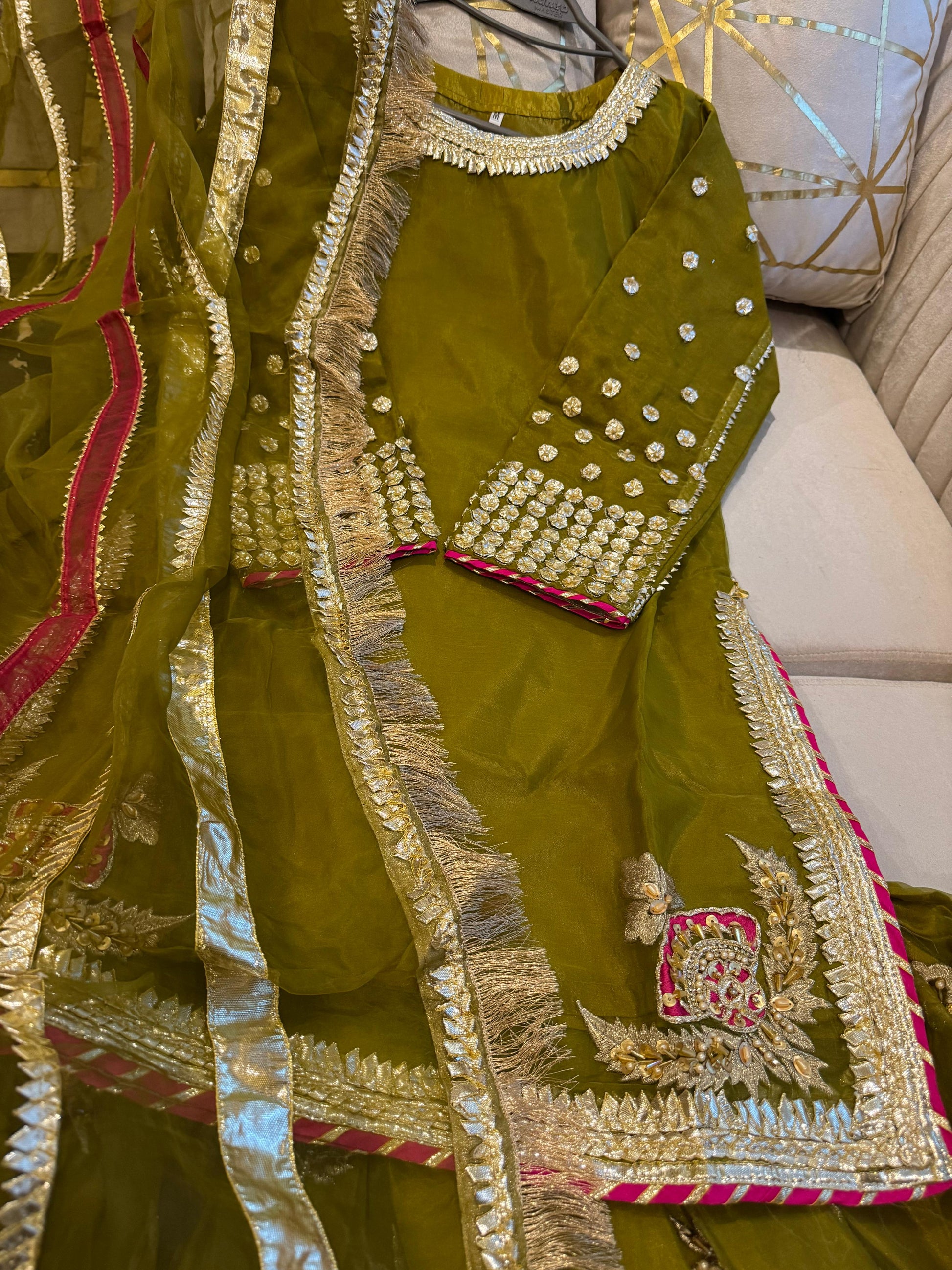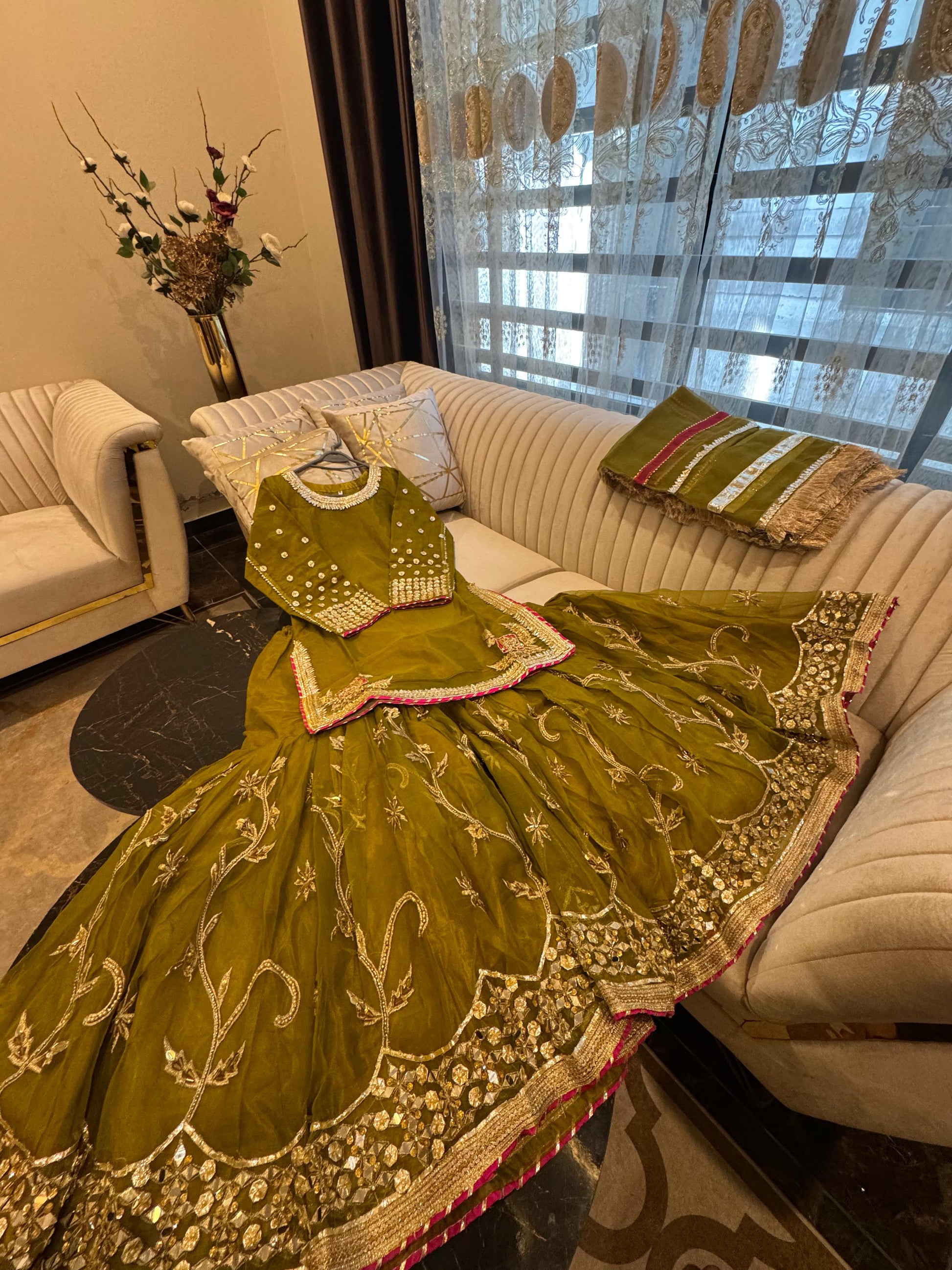 Introducing Daisy (MEHNDI GREEN), the perfect outfit for mehndi and utbn occasions.