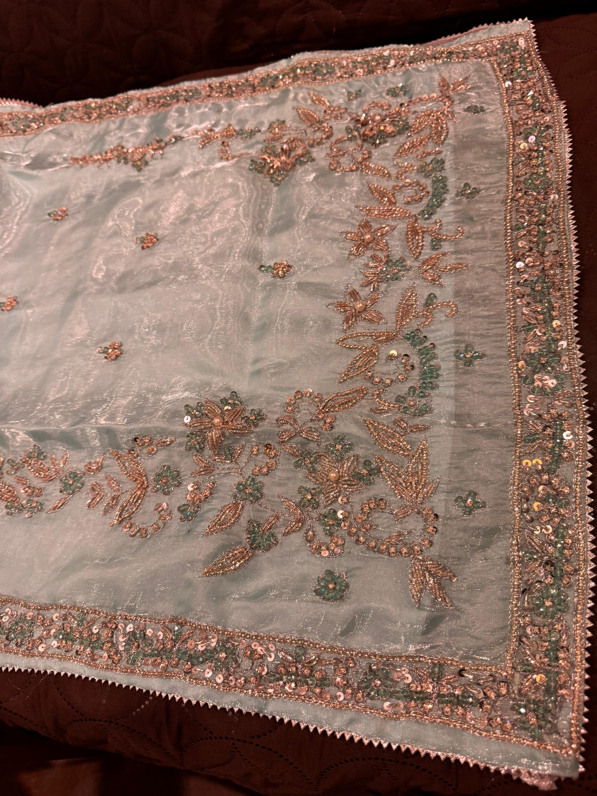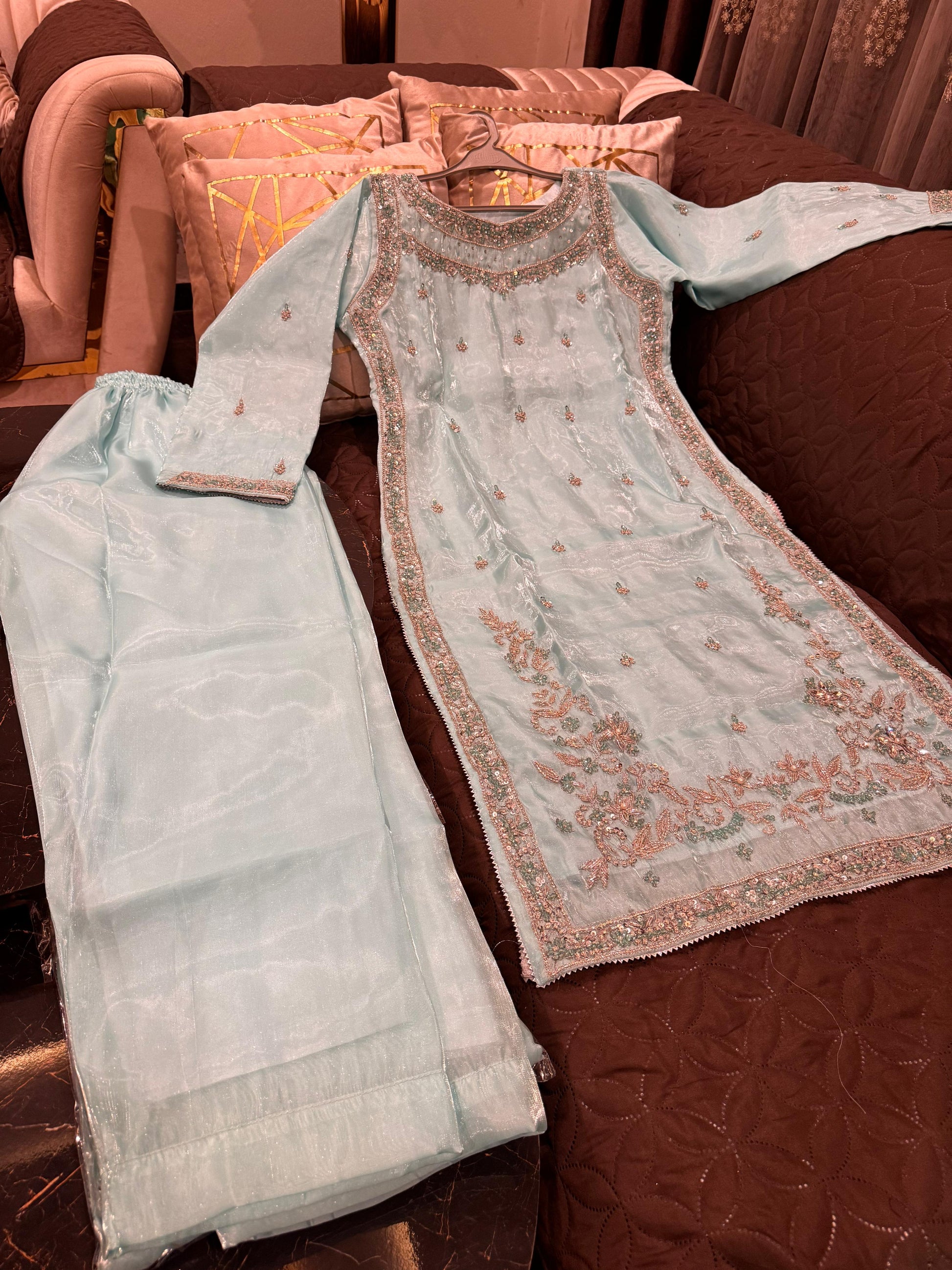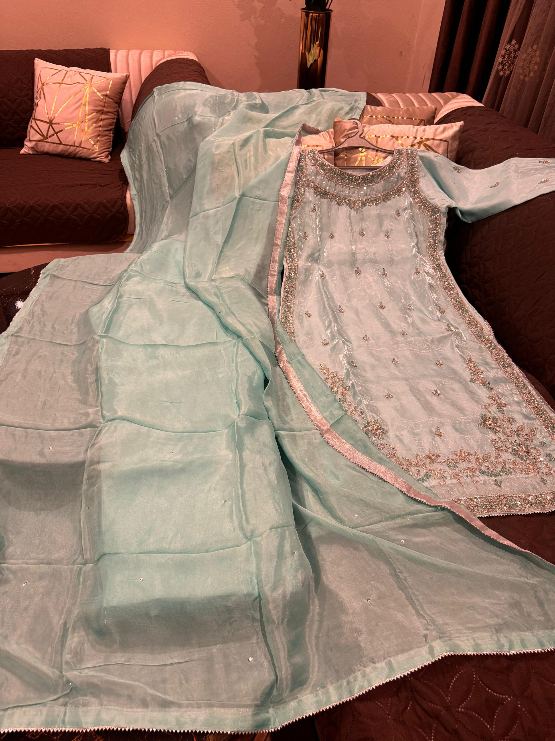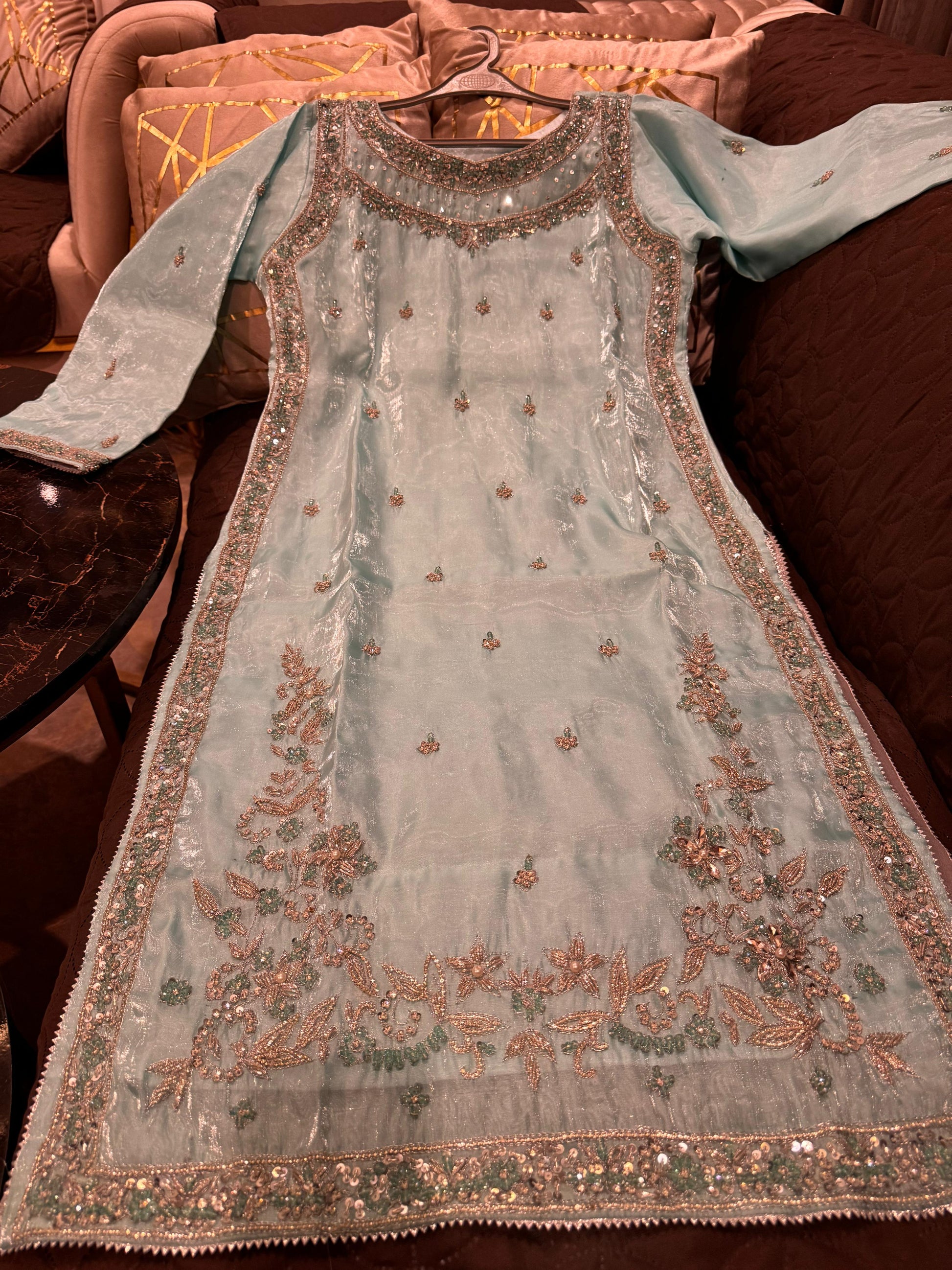 - Beautiful Shesha Silk outfit with handmade cutdana & dabka work š